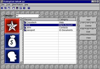Cresotech DesktopSafe is a convenient tool for safe storage of confidential information. It provides the comfortable management and secure storage of passwords, nicknames, credit card, bank account and document data as well as other confidential information. Cresotech DesktopSafe protects your confidential information from being viewed. Instead of memorizing dozens of passwords, nicknames, numbers, etc., you have to remember the only password - the one giving you access to whole database. DesktopSafe Lite version is distributed absolutely FREE OF CHARGES. DesktopSafe Pro version, in addition to all DesktopSafe Lite version benefits, will allow you to: save your records to more than one DesktopSafe database files; export/import your data to and from your PocketPC provided you have Cresotech PocketSafe installed there; adjust the program appearance (bacground colors and bitmaps used); remove final advertising screens on exit. With DesktopSafe Pro, you can easily export/import your data to and from your Pocket PC - just connect your Pocket PC to desktop PC and access Files menu. Use Export to Pocket PC option to transfer your data to Pocket PC or Import from Pocket PC option to acquire the data file from Pocket PC. To handle your confidential records on Pocket PC, you need to install Cresotech PocketSafe to your Pocket PC. PocketSafe will do all the work ? it has the same functions as DesktopSafe, but operates on the Pocket PC instead of desktop. You can easily upgrade your DesktopSafe Lite version to Pro - just click UPGRADE button in the DesktopSafe Lite program window!