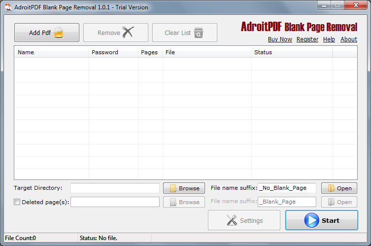 Pdf created by scanning paper documents in duplex mode may contains blank pages inside due to blank backside of any paper. On the other hand, these blank pages may be inserted intentionally. To remove these blank pages, try Adobe PDF Blank Page Removal utility free. If you are keep getting pages which are blank after scanning as PDF, our Pdf blank page delete app is best solution. Tool is suitable answer of how to delete blank pages in PDF. Program uses only few mouse clicks only, automatically detects blank pages, cut them from pdf and saves new pdf at predefined location. Tool lets you to import one or more pdf document at once in program Window to analyze documents. Tool picks document one by one, process each page of selected document, deletes it from pdf if any blank page found and finally re-save pdf. The entire process of blank page detection is automatic; no user intervention is required once tool started searching blank pages. Tool provides option to define threshold value for pages to consider the page as blank. Pdf Blank page delete application is Windows 8 compatible, does not require extra technical skills & third party tools for proper functioning.