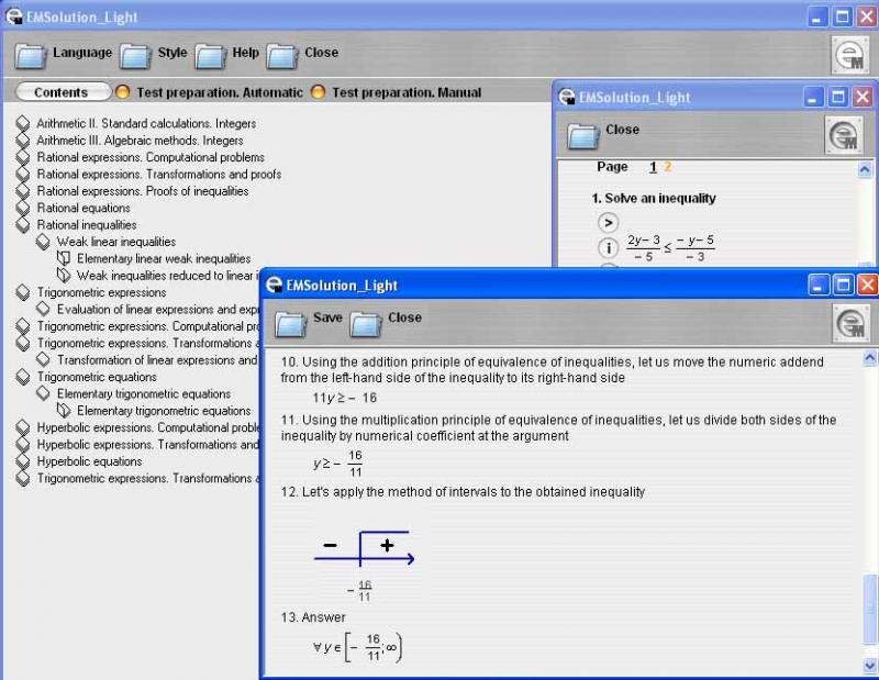 This bilingual problem-solving mathematics software allows you to work through 41087 hyperbolic problems with guided solutions, and encourages to learn through in-depth understanding of each solution step and repetition rather than through rote memorization. The software includes all the hyperbolic and inverse hyperbolic functions and offers tasks on simplification and evaluation of hyperbolic expressions, proofs of hyperbolic identities and solutions of hyperbolic equations. Each solution step is provided with its objective, related definition, rule and underlying hyperbolic formula. A translation option offers a way to learn math lexicon in a foreign language. Test preparation options facilitate development of printable math tests and homeworks, and automate preparation of test variants around each constructed test. A number of variant tests are ready for students to review and reinforce their skills. The software supports bilingual interface and a number of interface styles. Free fully functional trial version of this program is available