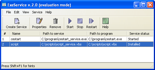 Exe To Service allows you to install any Windows executable, Visual Basic or Java script as a service. Windows services are background processes that do not interfere with the logged user's environment. Windows services are controlled by the Service Control Manager. You can start them on boot before the user logs on and control their execution remotely. Exe To Services also installs a simple service scheduler. Thus, you can also start services at a specified time.