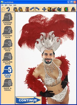 FaceOnBody is the first software ever created exclusively for digitally swapping faces (a bit like Photoshop minus all that extraneous functionality). FaceOnBody allows users to alter digital photos copying any face onto any body, quickly and easily. With any Windows-based system, you can transport the faces of your friends, classmates and co-workers to the most glamorous, sexy, seedy, hilarious places you can imagine. All you need is your digital photos and a little imagination, FaceOnBody does the rest. No high-tech computer mastery is needed to create hilarious photos of yourself, friends - or, even enemies. FaceOnBody uses a simple drag-and-drop technology that allows even the most non tech-savvy users to make lifelike keepsakes. Make pictures of yourself partying with Paris Hilton, conferring with George Bush, onstage on American Idol, even carried atop teammates' shoulders after a winning Yankee game. Your kids will be endlessly entertained seeing their faces on the bodies of Shrek and Jimmy Neutron. FaceOnBody's hysterical Image Library is an integrated Web browsing and download tool that lets you choose the funniest bodies and scenes from around the World. Make the perfect parody image. Movies, TV, Celebrities, Comics and much, much more. Put yourself in Britney's embrace or your boss in the cast of One Tree Hill (or any number of lame WB teen dramas). Your Real World audition tape was returned unopened? No problem. Cast yourself into any show you'd like! Standard tools include face resizing, rotation and mirroring, allowing for perfect face positioning. Plus, advanced paint tools allow you to touch-up by painting more of the face or more of the scene. In addition, for Web images, the specialized Background Painter actually allows painting from behind the heads in the original scene, effectively erasing them from existence.