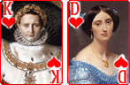 Hearts Card GameCard game for 3 or 4 persons with variant of The Tarot of Marseilles. The 18th century ancestor of Hearts was called Reverse.