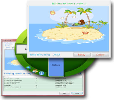 PC WorkBreak provides proper reminders to reduce your RSI (Repetitive Strain Injury) risk. It offers multi-type break reminders such as micro-break, stretch, eye exercises and walk, based on your PC usage model, and all settings are configurable.