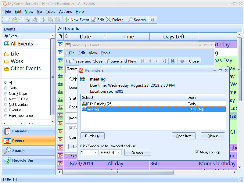 Efficient Reminder is a cross-platform appointment and event reminder tool. With her help, you will be able to catch up with your meetings and prepare for your mom's birthday in time. And you can sync data across PCs and mobile phones.