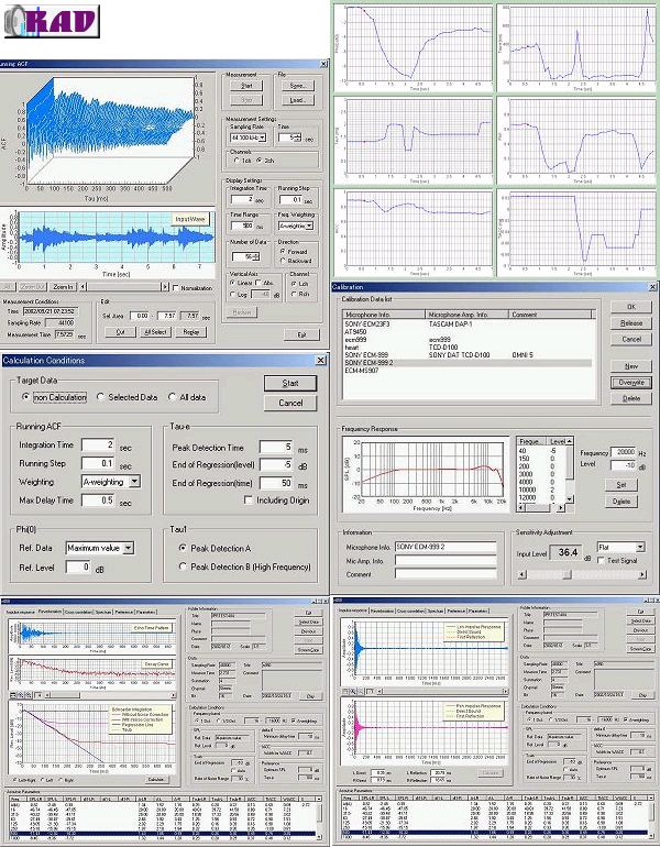 RAD is the functional limited edition of the advanced acoustic research system DSSF3. The point that RAD differs from other systems completely is that a time change of sound can be analyzed in detail at a high temporal resolution. Using RAD, various sound qualities such as loudness, total quality, pitch and the movement of source can be analyzed by the running ACF measurement. Broad examples of measurement are considered, such as a measurement in a concert hall, measurement of a home audio and car audio, tuning of a musical instrument, aircraft noise measurement, traffic noise measurement, analysis of toilet noise, musical instrument music analysis, voice analysis, performance measurement of a motor, measurement of the operation sound of an air-conditioner, and heartbeat measurement.