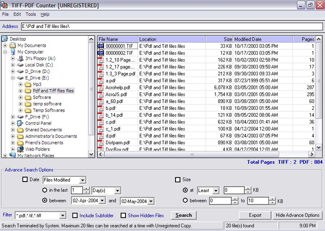 Tiff PDF counter is an easy to use tiff and PDF page count application. It supports all versions of single and multi-page tiff and PDF files. It is also fastest tiff and PDF counting application. We have tested it with 60000+ pages.