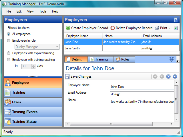 While physical records will always be important, a database of training information provides significant advantages for the purpose of scheduling, reporting, and sharing information. Training Manager is fully network ready.