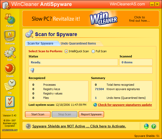 Free AntiSpyware Solution with Active Shields Technology for Total Protection. It minimizes interruptions and helps you stay productive. WinCleaner AntiSpyware exceeds the protection of most commercial solutions! Get it for free Now!